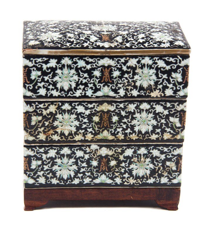A Chinese Export Porcelain Triple Nesting Box and Cover