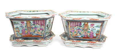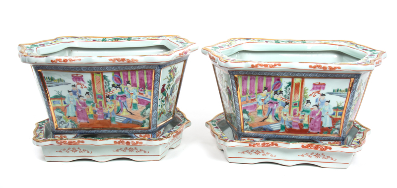 A Pair of Chinese Rose Mandarin Style Porcelain Jardinieres