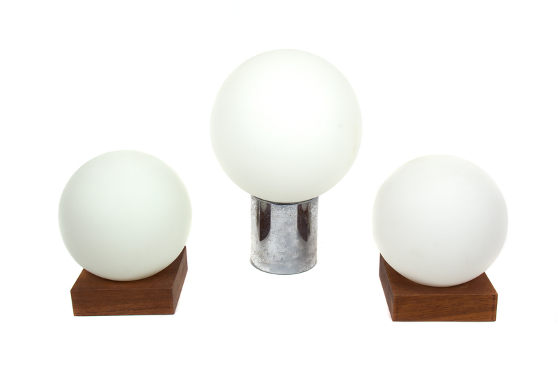 Three Mid-Century Frosted Glass Globe Form Table Lamps