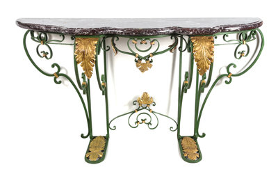 A Painted and Parcel Gilt Wrought Iron Console Table