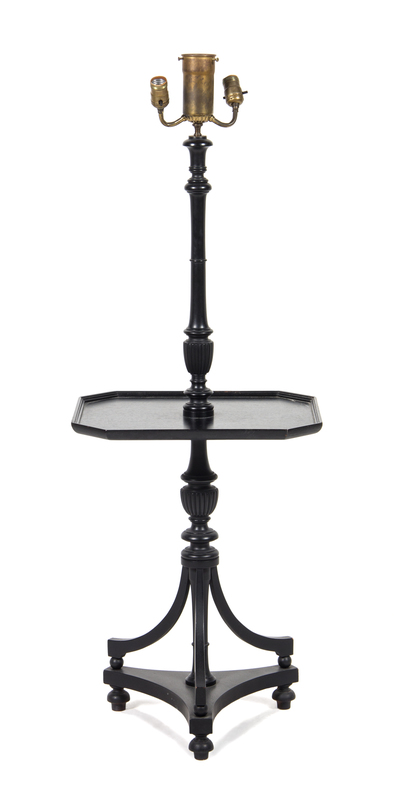 An Ebonized Wood Table with Integral Floor Lamp