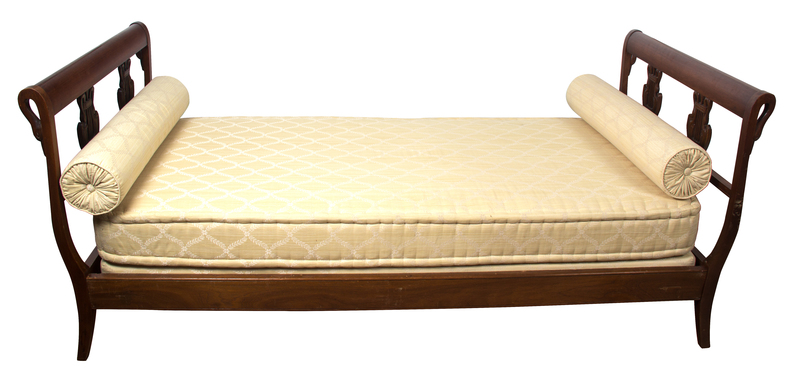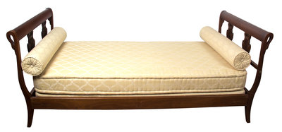 having double-lyre sides flanked by swan's neck supports, on splayed legs.