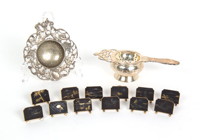 Two Tea Strainers and Twelve Japanese Place Card Holders