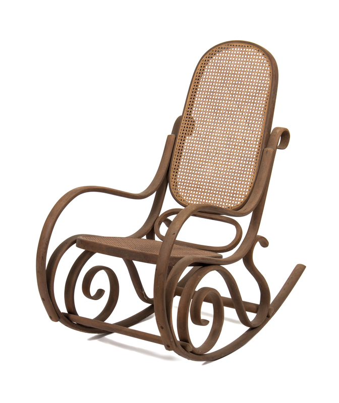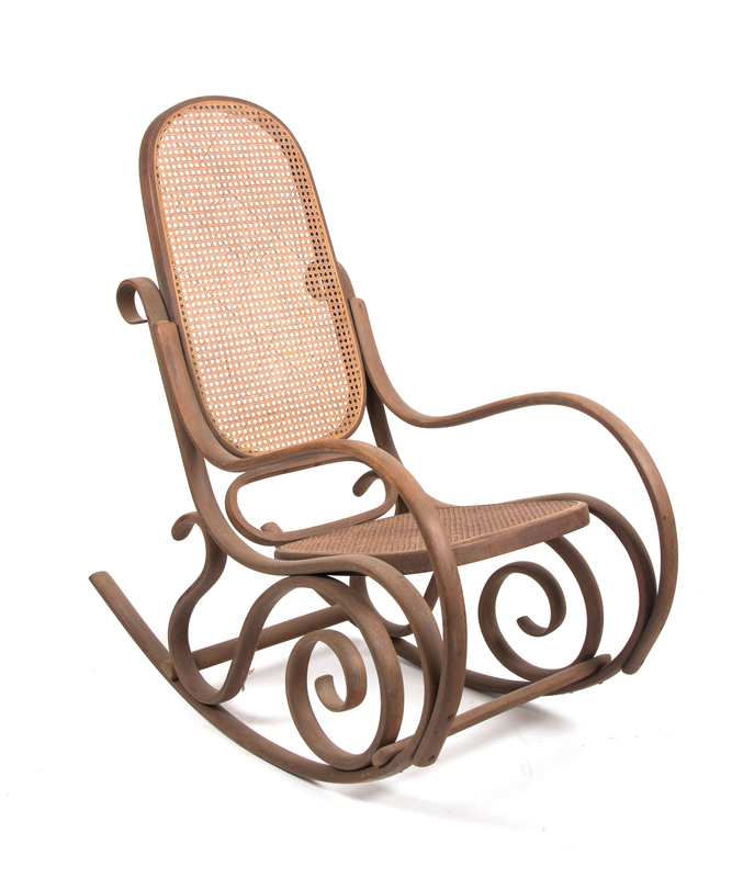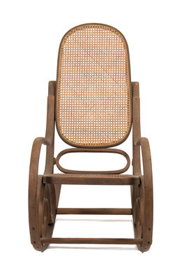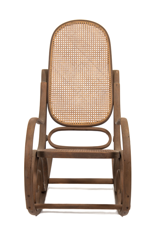 with caned back and seat, paper label under seat reads "Made in Italy".