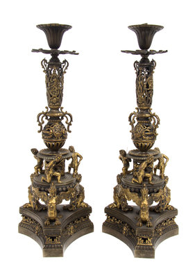 having pierced figural and mask design, resting on a tripartite base.