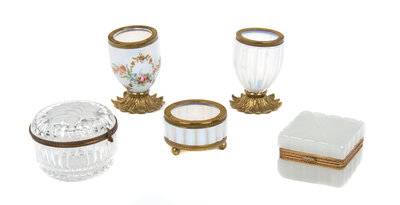 Five Miscellaneous Gilt Metal Mounted Glass Desk Articles