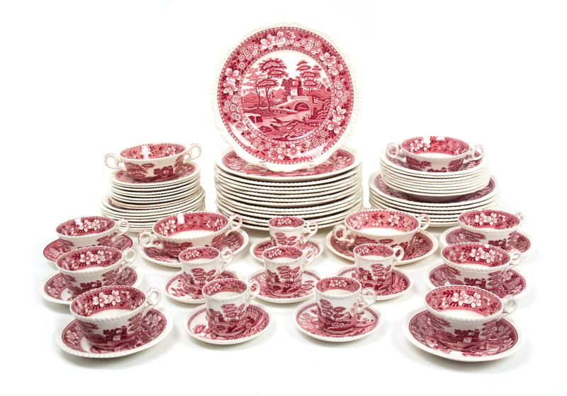 A Spode Red and White Transfer Decorated Partial Dinner Service