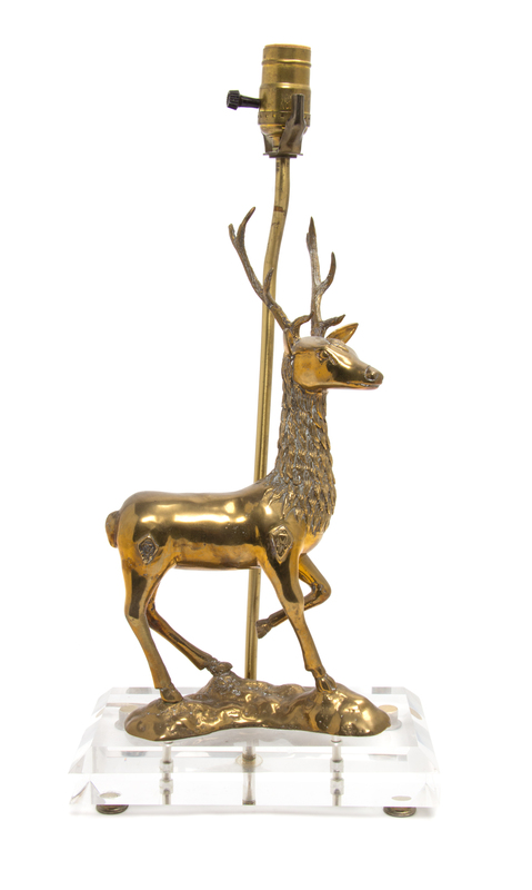 A Brass Stag Form Lamp