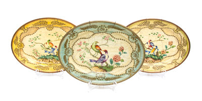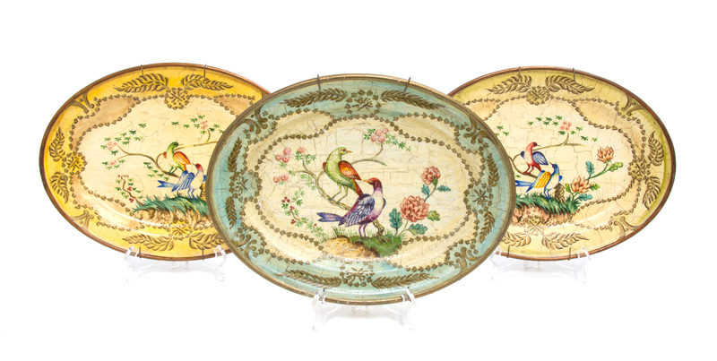 of oval form, each painted with scenes with birds.