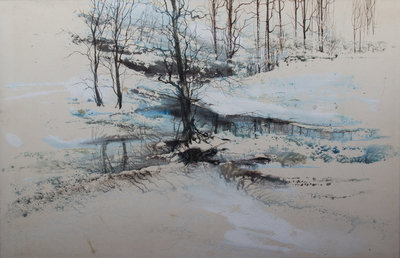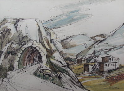 Mountainous Landscape with Tunnel and Houses, 1994 andSnowscape with Stream