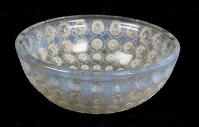 A Rene Lalique Molded and Frosted Glass "Nemours" Bowl