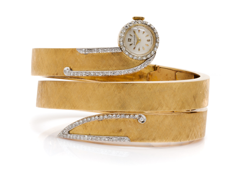 An 18 Karat Yellow Gold and Diamond Wraparound Bracelet Wristwatch,