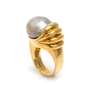 An 18 Karat Yellow Gold and Cultured Pearl Ring, Gump's,