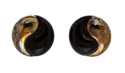 A Pair of 14 Karat Yellow Gold and Onyx Yin-Yang Earclips, Rio,