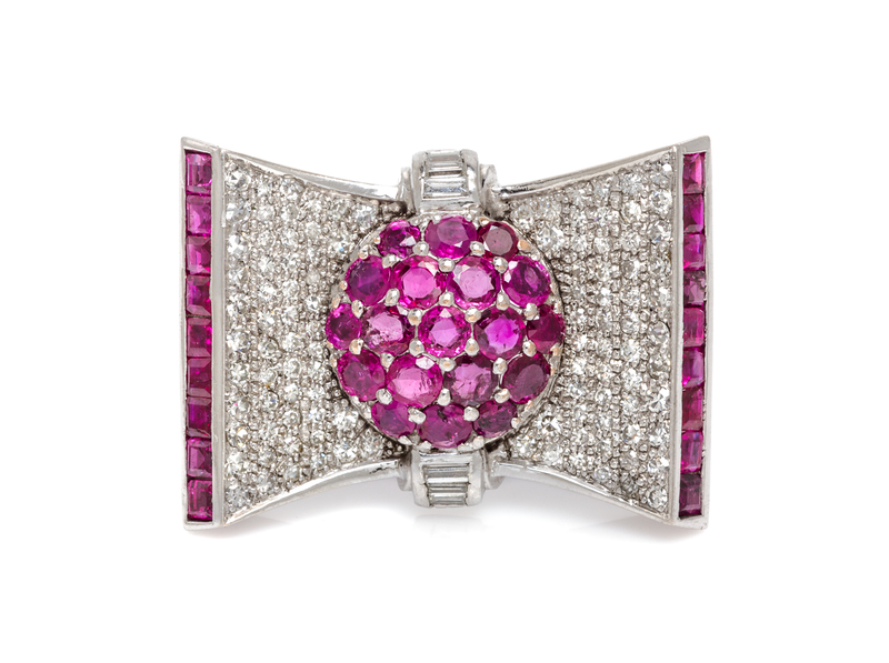 An Art Deco Platinum, Ruby and Diamond Brooch,