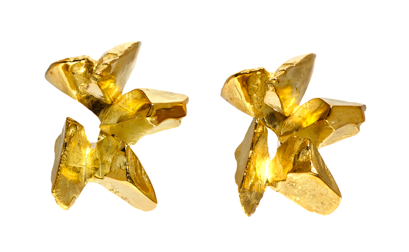 in a matte finish free-form sculptural design, measuring approximately 47.60 x 31.75 mm. Stamp: AP318 (French assay and maker's marks).