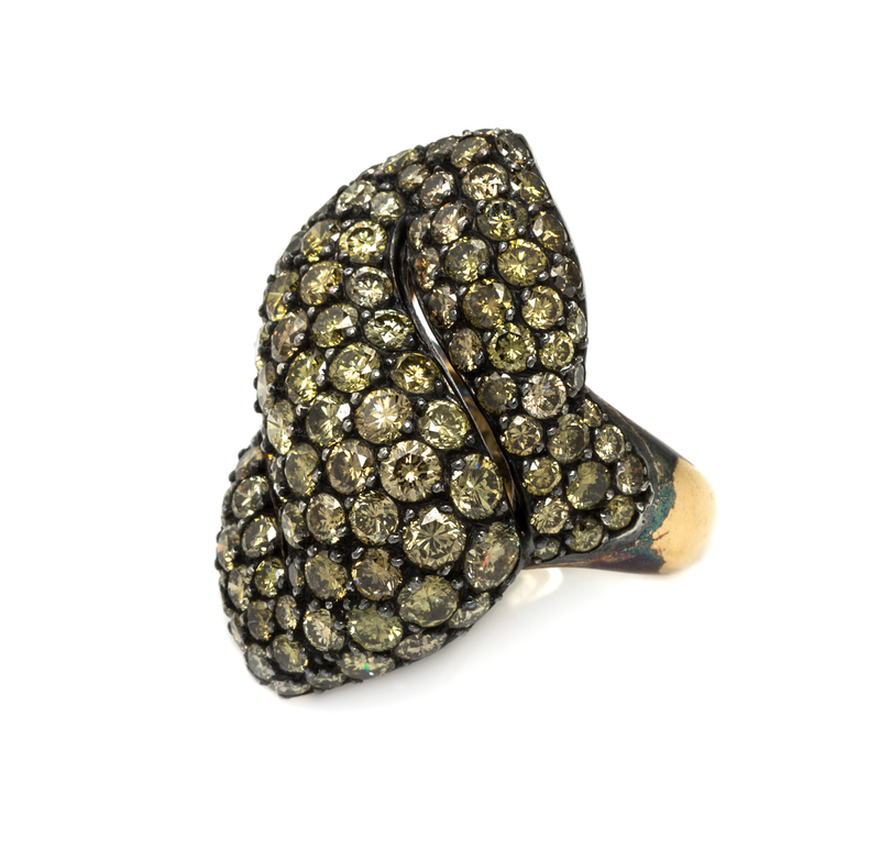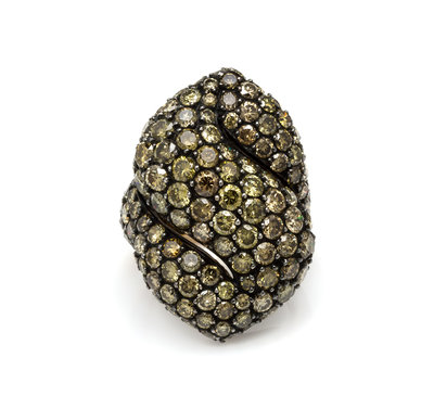 An 18 Karat Yellow Gold, Silver and Colored Diamond Ring, Gioia,