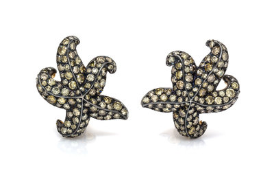 in a starfish motif, the settings black rhodium plated, containing 248 round brilliant cut colored diamonds (origin of color not tested) weighing approximately 5.21 carats total.Stamp: (French assay marks).Hand inscribed: Gioia.Accompanied by a box signed Gioia.