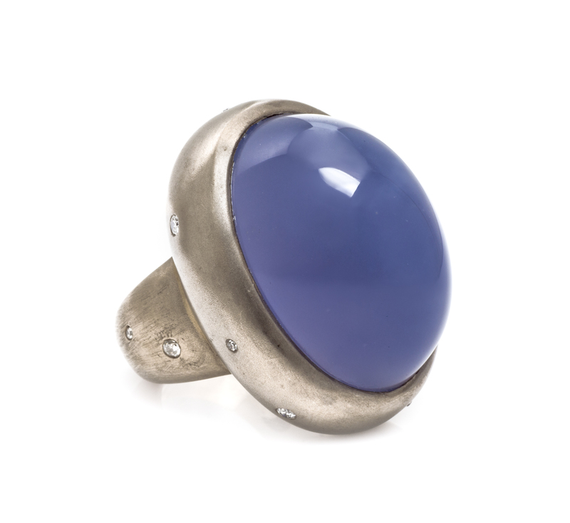 An 18 Karat White Gold, Chalcedony and Diamond Ring,