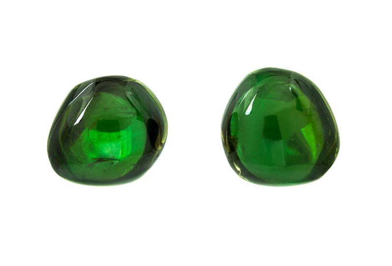 containing two free-form cabochon cut green tourmaline measuring approximately 21.50 x 19.00 mm set against conforming gold backs.Stamp: 18K N. Varney.