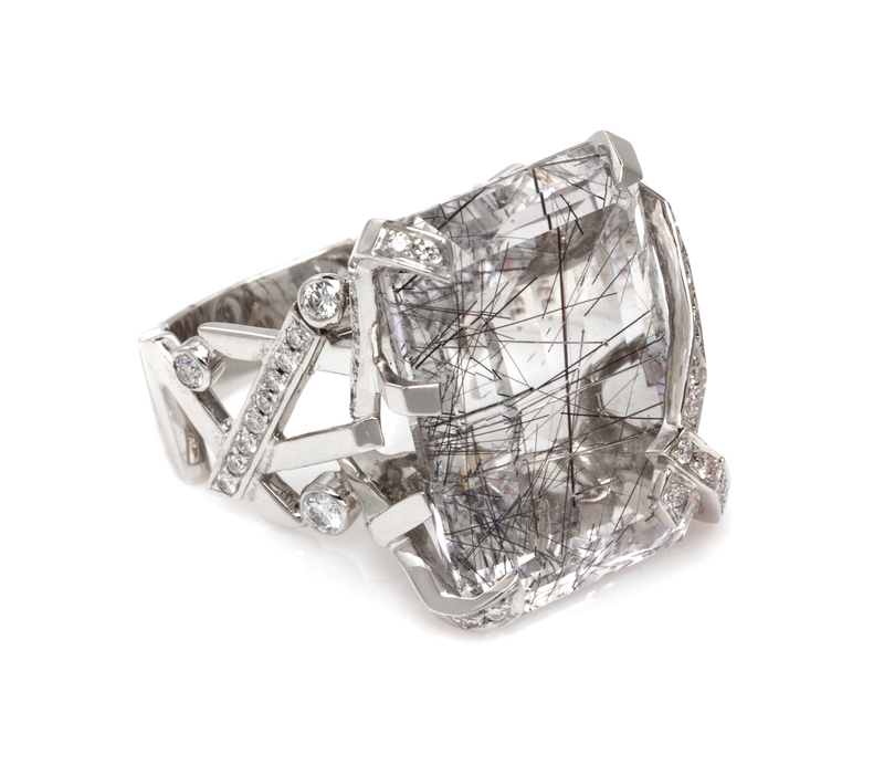 An 18 Karat White Gold, Tourmalinated Quartz and Diamond Ring, Chanel,