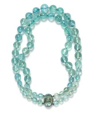 A Silver, Aquamarine and Green Beryl Double Strand Necklace, Suzanne Belperron,
