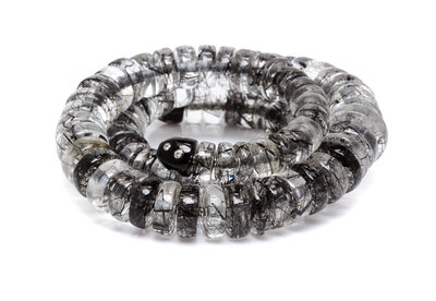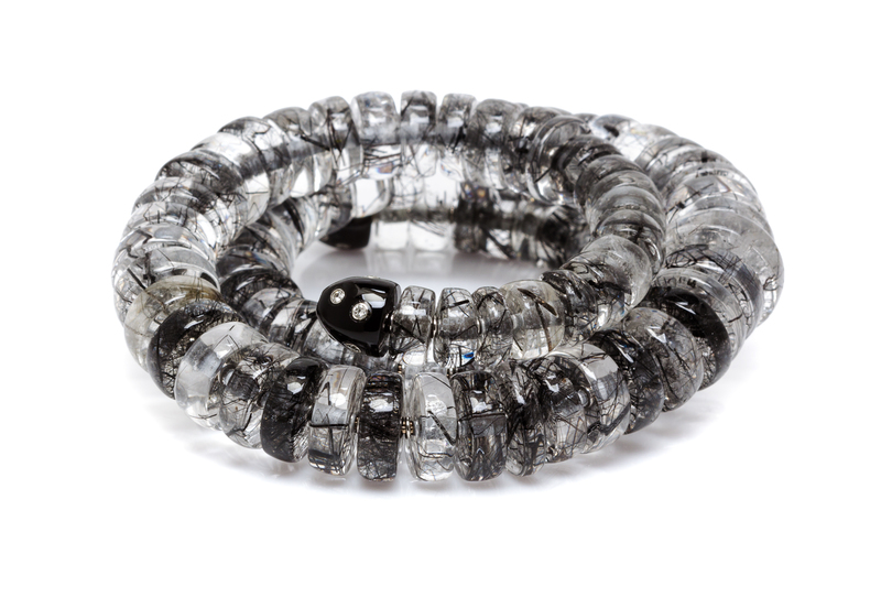 A White Gold, Tourmalinated Quartz, Onyx and Diamond Wrap-Around Bracelet,
