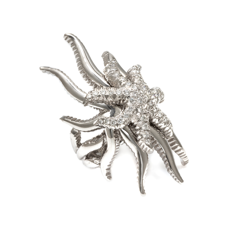 An 18 Karat White Gold and Diamond Starfish Ring, Doris Panos,