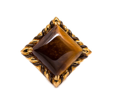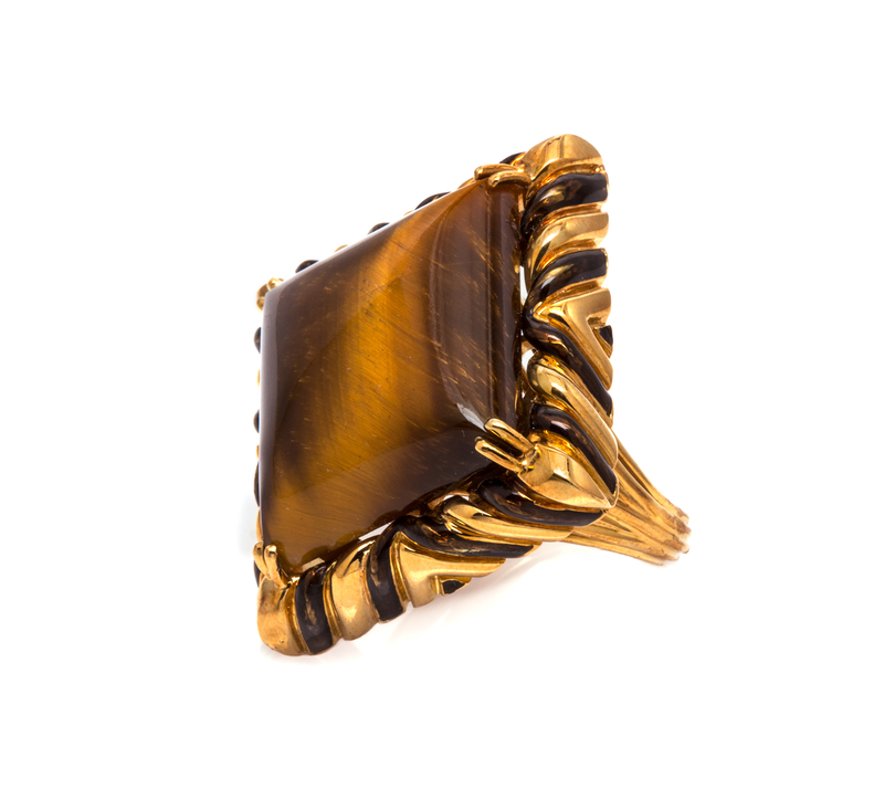 An 18 Karat Yellow Gold, Tiger's Eye Quartz and Enamel Ring, David Webb,