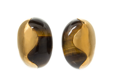 A Pair of 18 Karat Yellow Gold and Tiger's Eye Earclips, Van Cleef & Arpels,