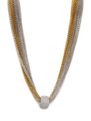 consisting of a multi strand yellow and white gold chain necklace suspending a domed pendant containing numerous pave set round brilliant cut diamonds weighing approximately 2.59 carats total.Necklace stamp: 750. Pendant stamp: 18K (Italian maker's mark).