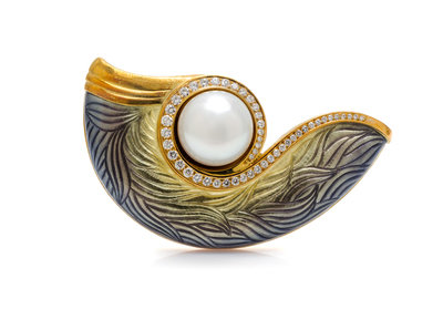 An 18 Karat Yellow Gold, Mabe Pearl, Diamond and Enamel Brooch, de Vroomen,