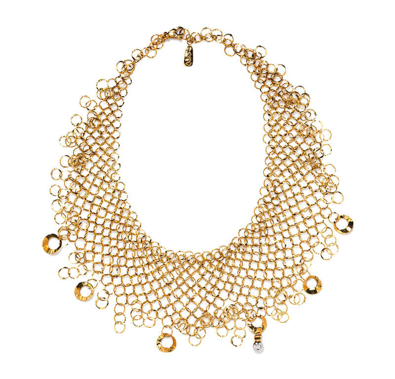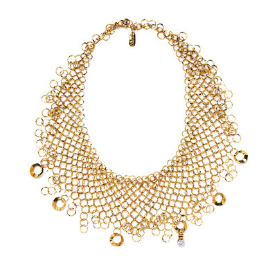 An 18 Karat Yellow Gold and Diamond Mesh Bib Necklace, Orlando Orlandini,