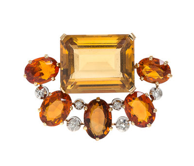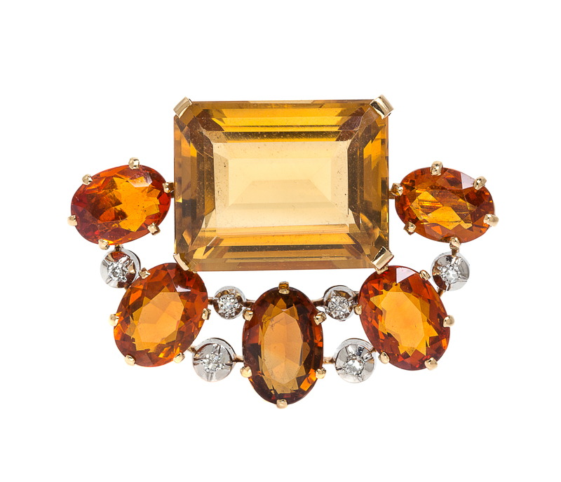 An 18 Karat Yellow Gold, Platinum, Citrine and Diamond Brooch, Jean Fouquet,