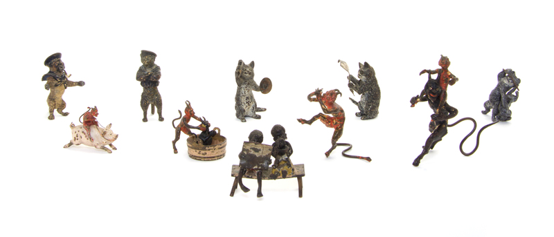 comprising rambunctious demons, cats engaged in various pursuits and figural groups, 10 total.