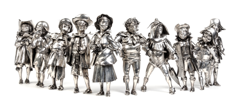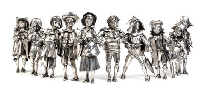 A Set of Ten Italian Silver Commedia Dell' Arte Figures