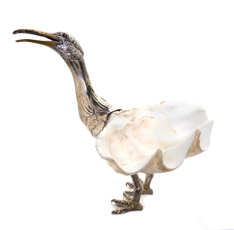 formed as a cormorant with a silver-gilt beak, silver neck and silver legs.