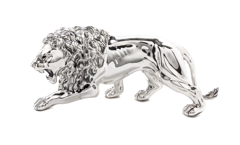 in the form of a striding lion.