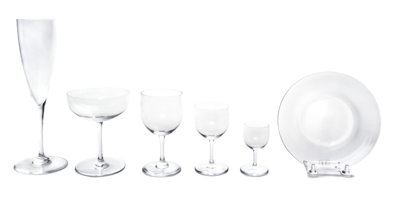 comprising dessert plates, red wines, white wines, a champagne flute, champagne coupes and cordials; 74 items total.