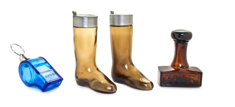 comprising five scent bottles, a stamp and a Venetian glass sculpture.