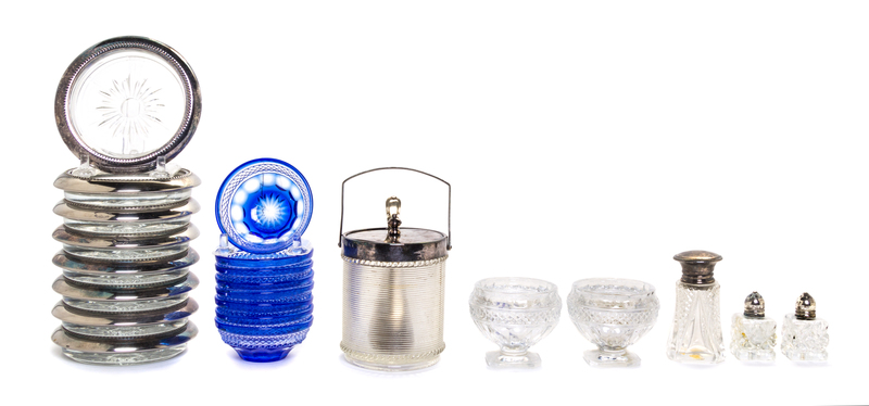 including ash receivers, silver mounted coasters, casters and others, 22 total.