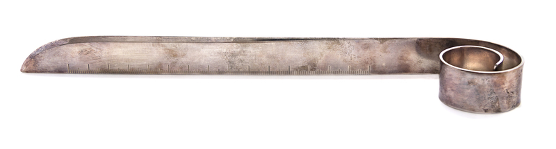 in the form of a tape measure with a scrolled handle.