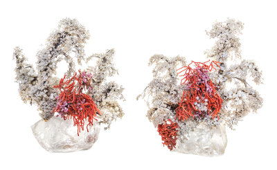 A Pair of Rock Crystal, Coral and Glass Tree Sculptures