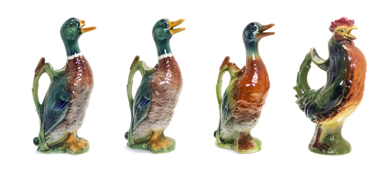 three in the form of mallards, one a rooster.