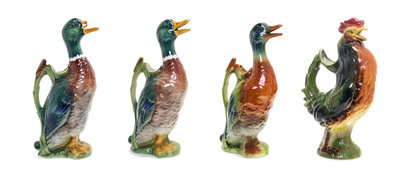 Four Majolica Zoomorphic Ewers