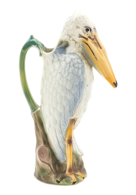 A Continental Majolica Stork Form Ewer