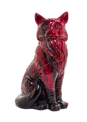 depicting a seated cat, with printed Royal Doulton/Flambe Veined mark on the underside.