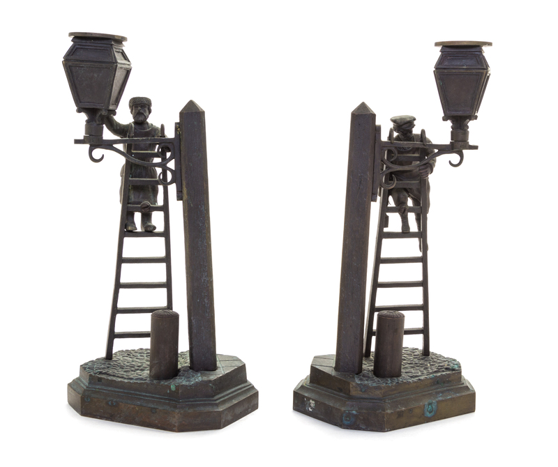 A Pair of Russian Bronze Figural Candlesticks