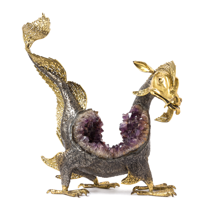 Nessie, depicting the Loch Ness monster and mounted with a large amethyst geode forming the body.