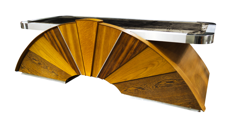 An Exotic Woods, Steel, Acrylic and Aluminum Desk